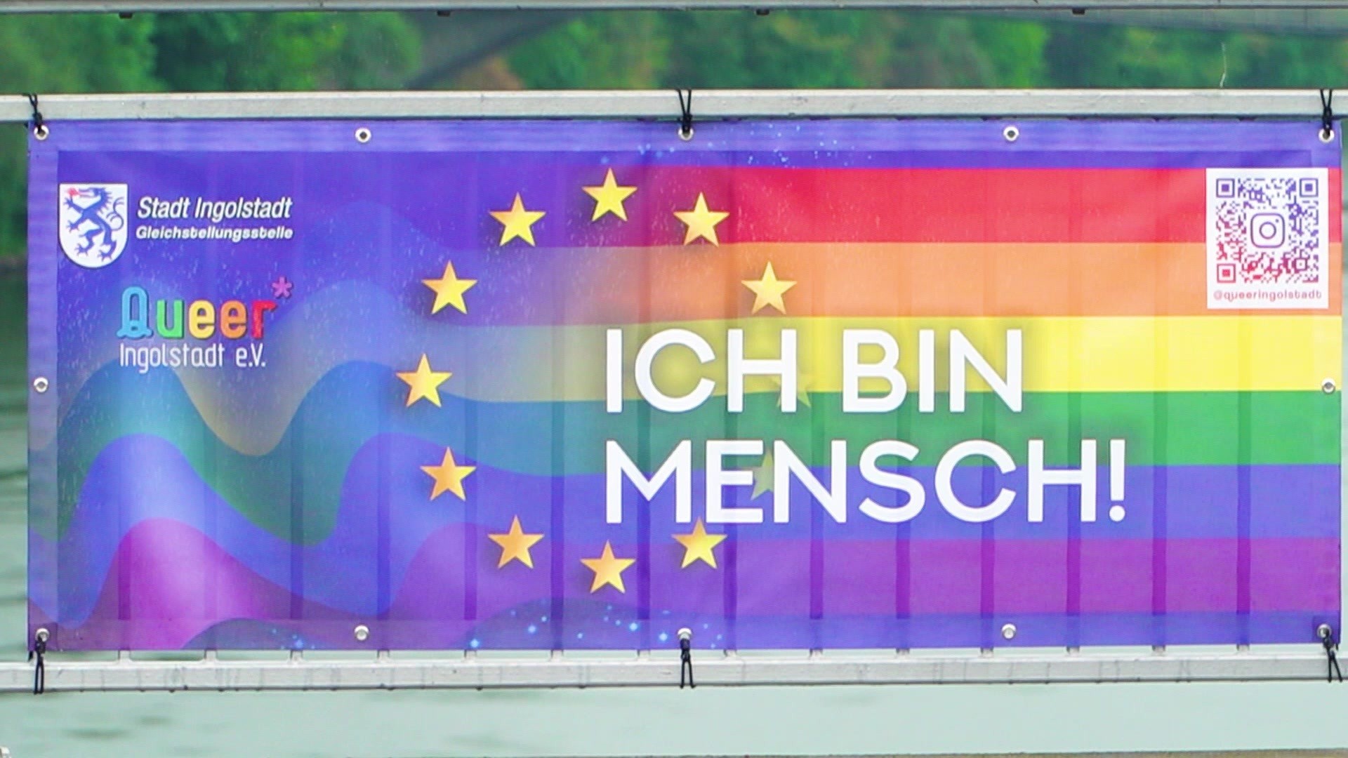 Morgen ist Internationaler Tag gegen Homo-, Bi-, Inter- und Transphobie. Dazu haben Aktive des Vereins Queer Ingolstadt e.V. zusammen mit der städtischen Gleichstellungsstelle vielfältige Aktionen geplant. Entlang der Konrad-Adenauer-Brücke sind auch Regenbogen-Banner mit Sprüchen wie „Respekt für Alle!“ oder „Mein Körper, meine Identität, mein Leben!“ zu sehen. Die Banner sind ab heute für eine Woche lang zu sehen – eine tolle Kulisse für Fotos.